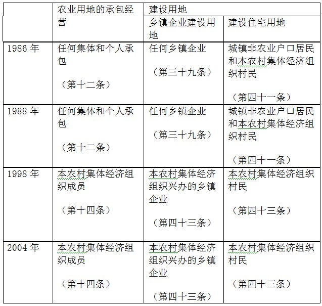 《土地管理法》规定的集体土地使用权可以流向的主体如下表所示: