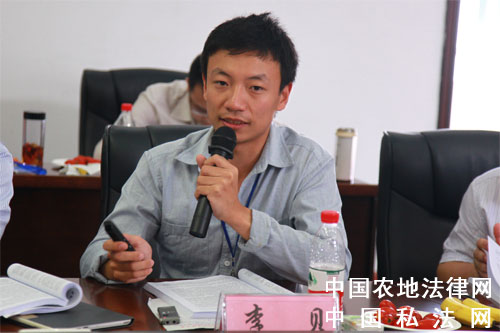 【中国农地法律网讯】2014年9月13日至14日,来自中南财经政法大学的专家学者与民商法专业的博士生以及中国社会科学院、中国人民大学、中国政法大学、巴黎二大、南京大学、厦门大学、武汉大学、中山大学、山东大学、东南大学、对外经济贸易大学、海南大学、西南政法大学、华东政法大学、上海财经大学、黑龙江大学、中南林业科技大学等众多高校的博士生齐聚中南财经政法大学文泓楼,参加由中南财经政法大学举办的第五届全国民商法博士生论坛。本次论坛的主题是全面深化改革与我国民商法学的发展,分为民法总则、债法、物权、商法、热点追踪以及家事法等六个专论。与会专家正在进行深入讨论。图为巴黎二大法学院博士生李贝进行题为“合同解除权行使期间的反思”的报告。