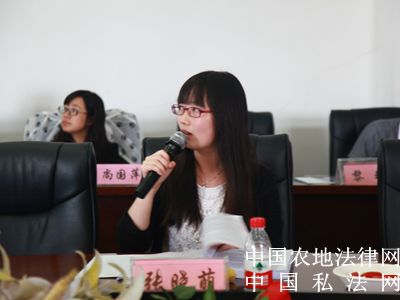 【中国农地法律网讯】2015年9月26日至27日,来自中南财经政法大学的专家学者与民商法专业的博士生以及中国人民大学、中国政法大学、厦门大学、吉林大学、南京大学、武汉大学、山东法官学院、海南大学、西南政法大学、华东政法大学、西北政法大学、上海交通大学、苏州大学王健法学院等众多高校的博士生齐聚中南财经政法大学文泓楼,参加由中南财经政法大学举办的第六届全国民商法博士生论坛。本次论坛的主题是“民法典编纂与我国民商法学的发展”。与会的博士生和老师将进行为期1天半的讨论。图为中南财经政法大学法学院博士生张晓萌作主题报告。