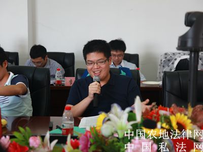 【中国农地法律网讯】2015年9月26日至27日,来自中南财经政法大学的专家学者与民商法专业的博士生以及中国人民大学、中国政法大学、厦门大学、吉林大学、南京大学、武汉大学、山东法官学院、海南大学、西南政法大学、华东政法大学、西北政法大学、上海交通大学、苏州大学王健法学院等众多高校的博士生齐聚中南财经政法大学文泓楼,参加由中南财经政法大学举办的第六届全国民商法博士生论坛。本次论坛的主题是“民法典编纂与我国民商法学的发展”。与会的博士生和老师将进行为期1天半的讨论。图为上海交通大学凯原法学院博士生张力毅作主题报告。