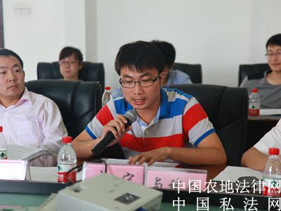 【中国农地法律网讯】2015年9月26日至27日,来自中南财经政法大学的专家学者与民商法专业的博士生以及中国人民大学、中国政法大学、厦门大学、吉林大学、南京大学、武汉大学、山东法官学院、海南大学、西南政法大学、华东政法大学、西北政法大学、上海交通大学、苏州大学王健法学院等众多高校的博士生齐聚中南财经政法大学文泓楼,参加由中南财经政法大学举办的第六届全国民商法博士生论坛。本次论坛的主题是“民法典编纂与我国民商法学的发展”。与会的博士生和老师将进行为期1天半的讨论。图为评议人正在评议。