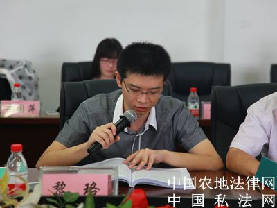 【中国农地法律网讯】2015年9月26日至27日,来自中南财经政法大学的专家学者与民商法专业的博士生以及中国人民大学、中国政法大学、厦门大学、吉林大学、南京大学、武汉大学、山东法官学院、海南大学、西南政法大学、华东政法大学、西北政法大学、上海交通大学、苏州大学王健法学院等众多高校的博士生齐聚中南财经政法大学文泓楼,参加由中南财经政法大学举办的第六届全国民商法博士生论坛。本次论坛的主题是“民法典编纂与我国民商法学的发展”。与会的博士生和老师将进行为期1天半的讨论。图为武汉大学法学院博士生黎珞作主题报告。
