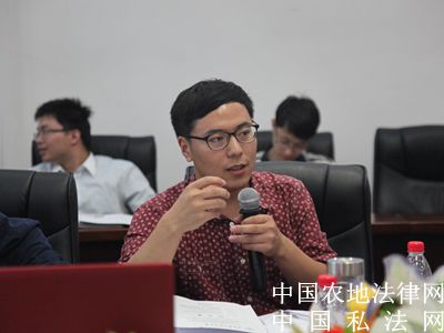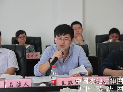 (与谈人:高 海) 【中国农地法律网讯】2015年9月26日至27日,来自中南财经政法大学的专家学者与民商法专业的博士生以及中国人民大学、中国政法大学、厦门大学、吉林大学、南京大学、武汉大学、山东法官学院、海南大学、西南政法大学、华东政法大学、西北政法大学、上海交通大学、苏州大学王健法学院等众多高校的博士生齐聚中南财经政法大学文泓楼,参加由中南财经政法大学举办的第六届全国民商法博士生论坛。本次论坛的主题是“民法典编纂与我国民商法学的发展”。与会的博士生和老师将进行为期1天半的讨论。图为评议人正在对报告进行评议。
