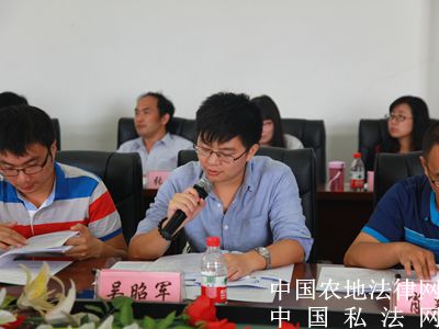 【中国农地法律网讯】2015年9月26日至27日,来自中南财经政法大学的专家学者与民商法专业的博士生以及中国社会科学院、中国人民大学、中国政法大学、南京大学、厦门大学、武汉大学、中山大学、山东大学、东南大学、对外经济贸易大学、海南大学、西南政法大学、华东政法大学、上海财经大学、黑龙江大学、中南林业科技大学等众多高校的博士生齐聚中南财经政法大学文泓楼,参加由中南财经政法大学举办的第六届全国民商法博士生论坛。本次论坛的主题是“民法典编纂与我国民商法学的发展”。与会的博士生和老师将进行为期1天半的讨论。图为西南财经政法大学民商法学院吴昭军博士主题发言。