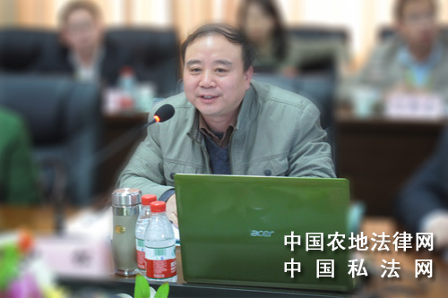 【中国农地法律网讯】2012年4月7日,来自中南财经政法大学的专家学者与民商法专业的博士生以及西南政法大学、大连海事大学、对外经济贸易大学、华东政法大学、吉林大学、南京大学、中国政法大学等众多高校的博士生齐聚中南财经政法大学文泓楼,参加由中南财经政法大学举办的第三届民商法博士论坛会议。本次论坛主要围绕农村集体土地征收问题立法的法理研究、农村集体土地征收立法的具体制度研究、集体建设用地使用权法律制度研究等三个主题展开。与会专家正在进行深入讨论。图为西北政法大学《法律科学》主编、中南财经政法大学民商法博士生韩松教授对此次民商法博士论坛进行总结。