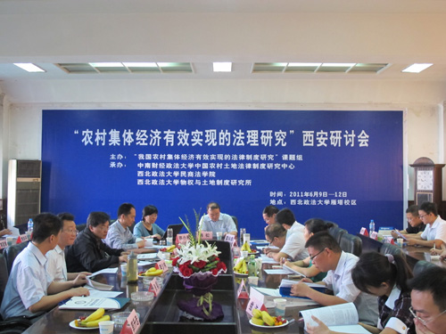2011年6月11日,由国家社科基金重大招标课题“我国农村集体经济有效实现的法律制度研究”课题组主办,中南财经政法大学中国农村土地法律制度研究中心、西北政法大学民商法学院、西北政法大学物权与土地制度研究所共同承办的“农村集体经济有效实现的法理研究”西安研讨会在西北政法大学顺利举行。来自中国社会科学院、中南财经政法大学、西北政法大学、武汉理工大学、湖北省高级人民法院、法制日报社等单位的30余名专家学者出席了研讨会。